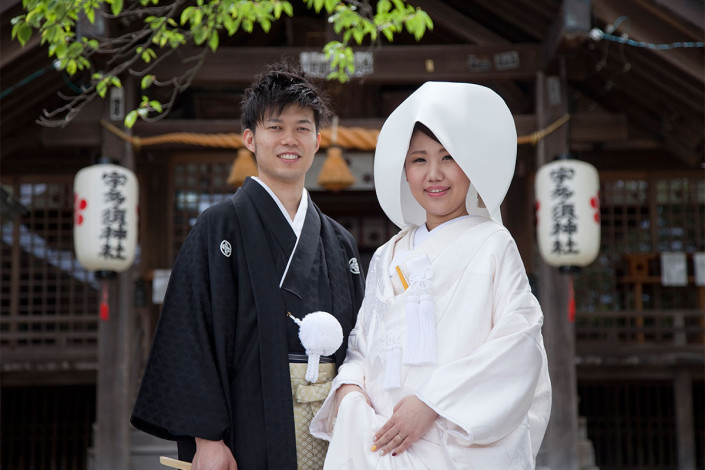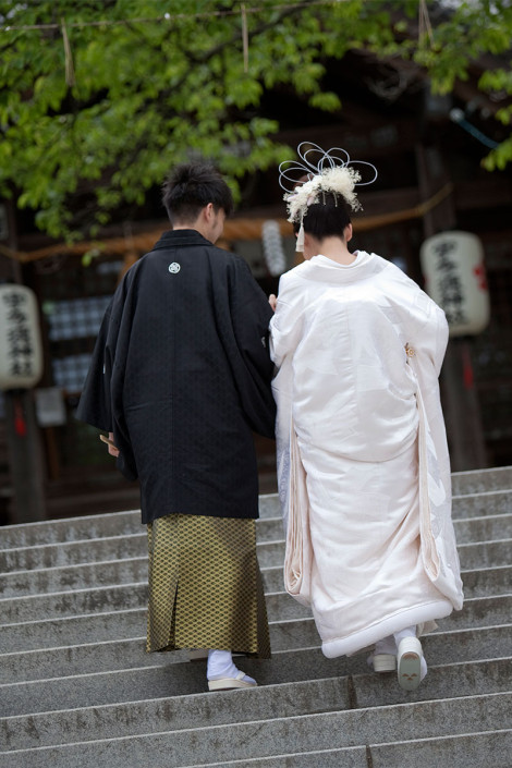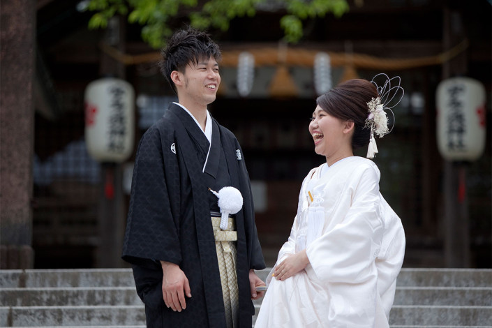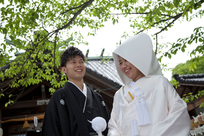 新緑の中、宇多須神社にて、前撮り撮影をお手伝いさせていただきました。